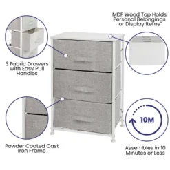 Flash Furniture 5 Drawer Wood Top Cast Iron Frame Storage Dresser With Easy Pull Fabric Drawers
