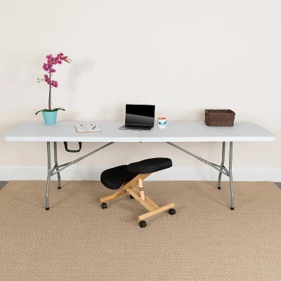 Flash Furniture 8-Foot Bi-Fold Granite White Plastic Banquet And Event Folding Table With Carrying Handle