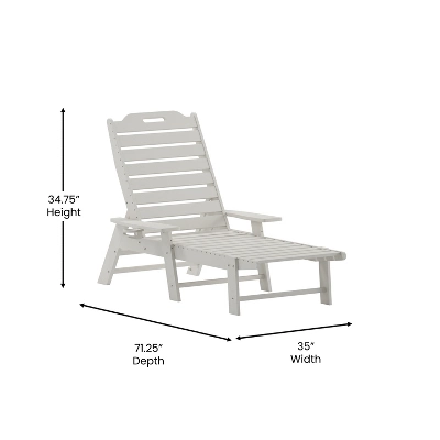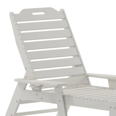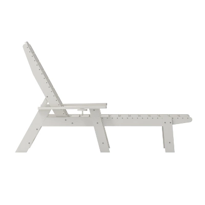 Provide total comfort for guests and patrons in your commercial business and friends and family at home with this all-weather Adirondack style adjustable lounge chair with cupholder. Beautifully crafted to fit in any décor, this outdoor lounge chair is ideal for poolside and patio seating. The supportive back can be adjusted to 5 recline positions for custom comfort. The elongated seat cradles your lower extremities allowing your whole body to relax. Extra wide arms relieve tension from the neck and shoulders and boast a slide out cupholder on the right side to free up your hands. Comprised of HDPE, this patio chair mimics the look of wood, but is stronger and doesn’t require any back-breaking labor for upkeep. The faux wood composition will not rot, chip, or peel and no painting or sanding will ever be required. UV fade resistance allows you to leave this Adirondack style chair out year round and great looks mean you can bring it into your sunroom for comfort in any season. Assembly is quick and easy with the included tools and step-by-step instructions and a damp cloth is all that is needed to maintain the looks of this fabulous Adirondack chair with cupholder. Available in multiple colors, feel free to mix and match or maintain a uniform color to suit your needs.