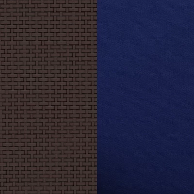 Create an amazing outdoor space with this comfortable and stylish chocolate brown patio chair. The durable resin frame offers a stylish appearance which replicates rattan. Deep seating enhances the comfort level. Navy all-weather cushions will hold up all season long. Clean up spills with a water-based cleaner or the cushions are zipper removable for washing purposes when spot cleaning just isn’t enough. Curl up with your latest read, or just relax and enjoy the outdoors with family and friends and create lasting memories!