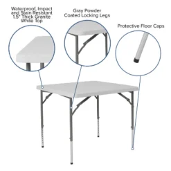 Flash Furniture 2.79-Foot Square Height Adjustable Granite White Plastic Folding Table