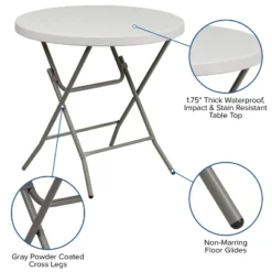Flash Furniture 2.6-Foot Round Granite White Plastic Bar Height Folding Table
